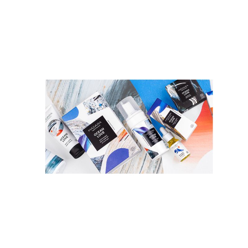 Met zeven iconische bestsellers van MÁDARA, prachtig gekleed in originele kunstwerken van de bekroonde Letse kunstenaar Klāvis Loris, arriveert deze duurzame collectie verpakt in plantaardige materialen en oceaanafval, waarbij bestaande plastic vervuiling een tweede leven krijgt.