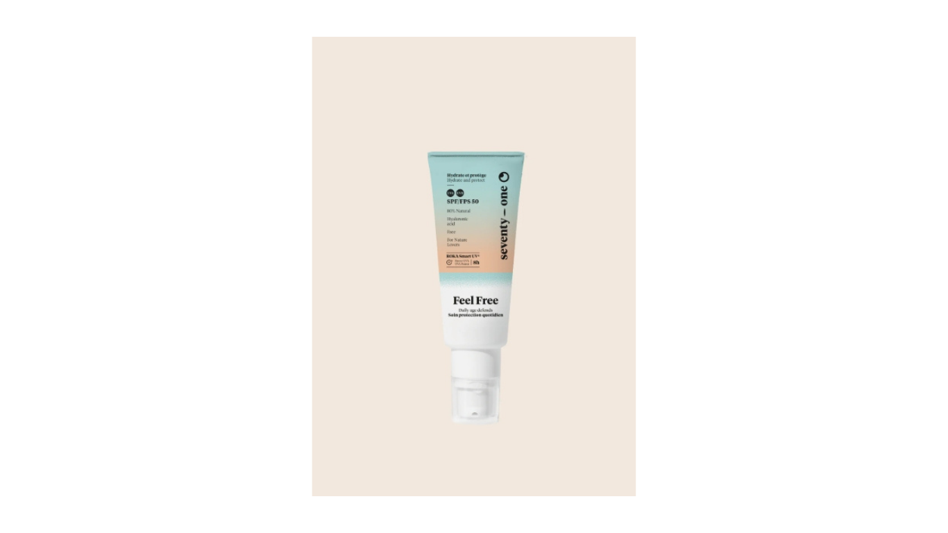 De Seventy One Feel Free SPF50 is dagelijkse hybride verzorging. Bescherming, hydratatie en glow in één.  De ultrabeschermende, hydraterende en anti-age fluïde voor dagelijks gebruik en je huid laat stralen, zelfs in de drukke, vervuilde stadsjungle. Deze lichte, onzichtbare textuur met matte finish maakt het de perfecte basis onder make-up of als solo skin enhancer. Met 85% natuurlijke ingrediënten en krachtige actieve stoffen houdt deze alleskunner je huid kalm, koel en comfortabel – van UV-straling tot luchtvervuiling en blauw licht van je scherm.